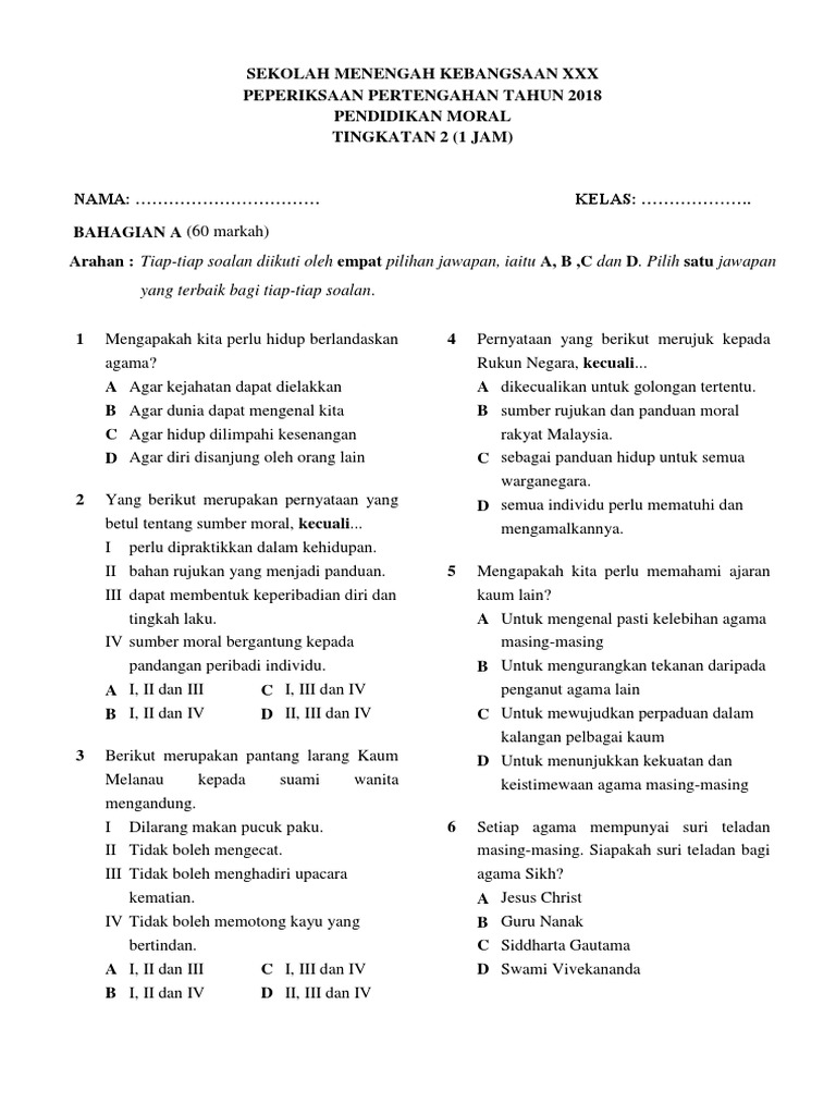 Soalan Dan Jawapan Pendidikan Moral Tingkatan 2 - Terengganu t