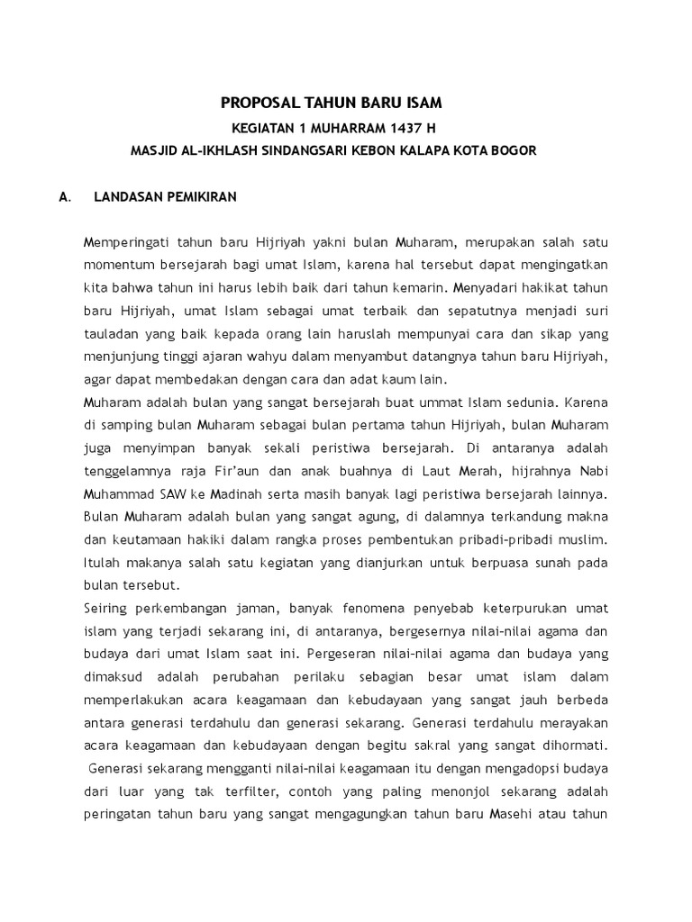 DOC) PROPOSAL KEGIATAN PERINGATAN TAHUN BARU HIJRIYAH | Akbariah Rahmah - Academia.edu