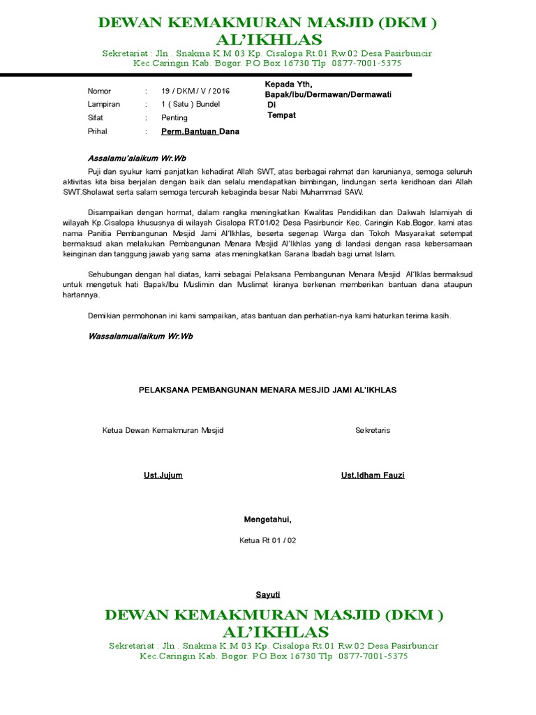 Contoh Surat Permohonan Dana Untuk Pembangunan Masjid | Belajar Office
