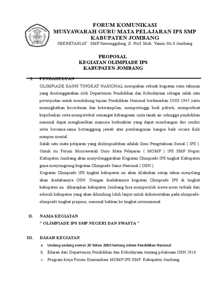 Contoh Proposal Osn O2sn Fl2sn Gsi - Guru Ilmu Sosial