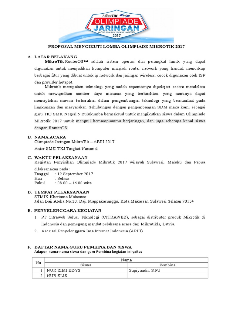 DOC) Contoh Proposal Kegiatan Lomba | Novarina Fahrisa - Academia.edu