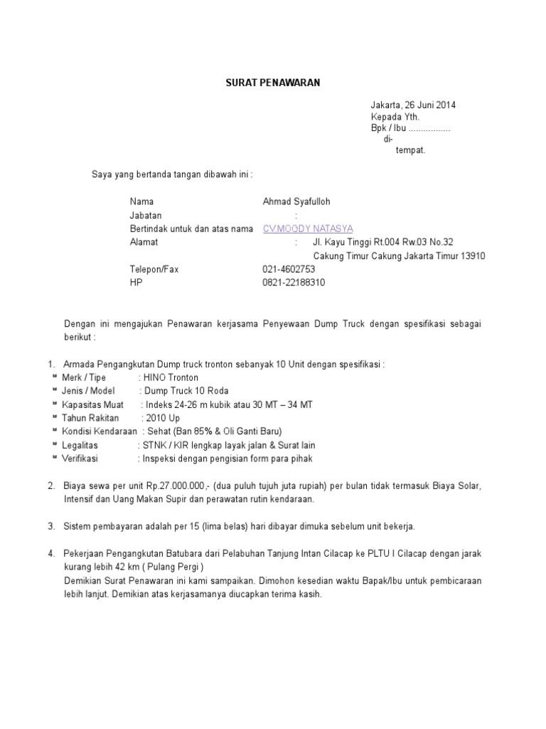 Contoh Surat Penawaran Mobil Ke Perusahaan - Kumpulan Surat Penting