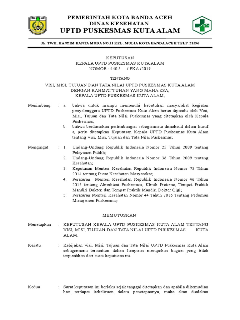 Contoh Sk Visi Misi Klinik Pratama - Guru Ilmu Sosial