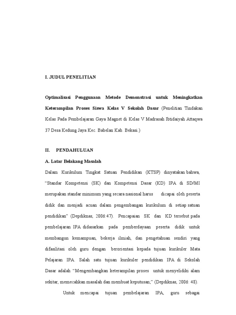 contoh proposal PTK IPA kelas IV SD 1 docx