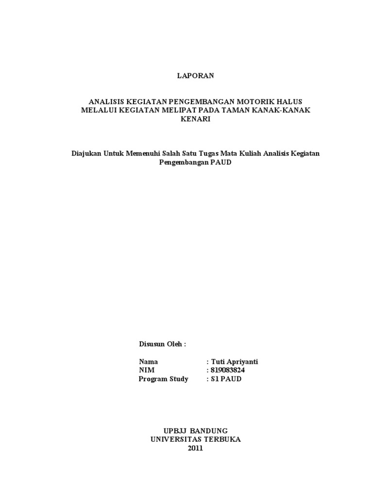 Laporan Pkp Paud Dalam Pengembangan Fisik Motorik Halus Anak …