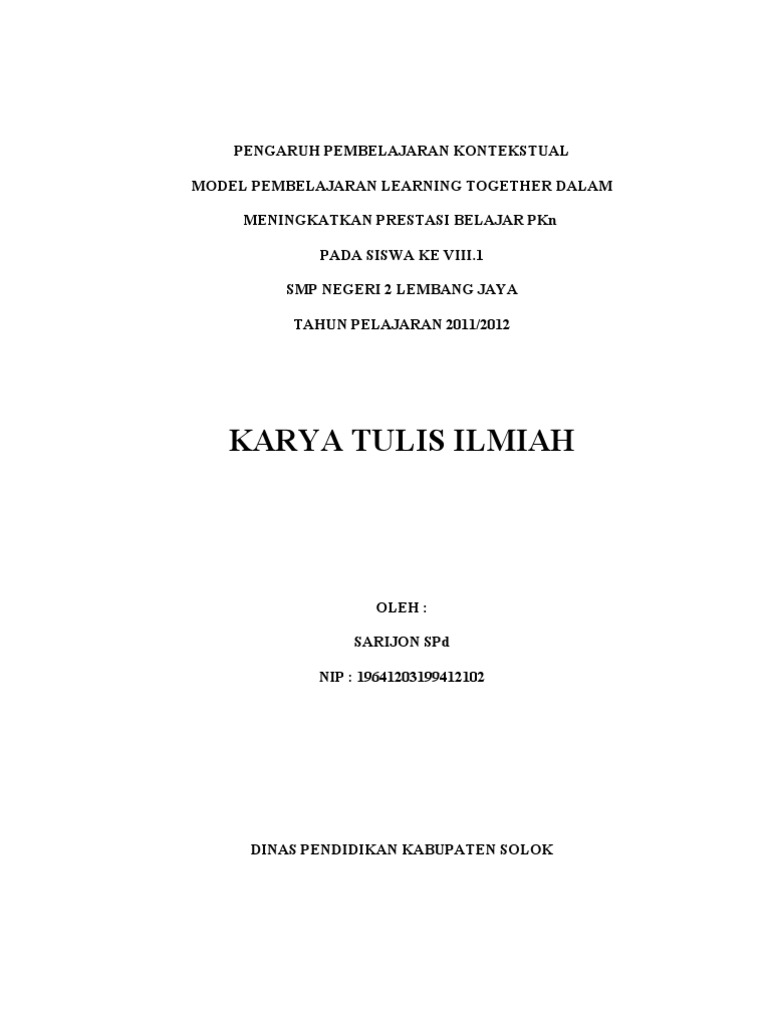 CONTOH PROPOSAL PENELITIAN TINDAKAN KELAS MATA PELAJARAN PKn SMP - Tempat Wisata Indonesia