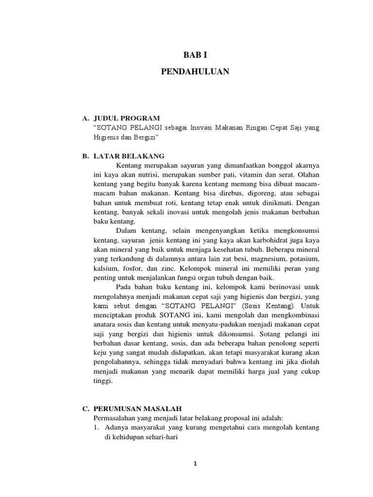 PDF) PROPOSAL PROGRAM KREATIVITAS MAHASISWA JUDUL PROGRAM " SOSIS TEBU " ( TEMPE DAN REBUNG ) SEBAGAI PELUANG USAHA | Muhammad Nawa - Academia.edu