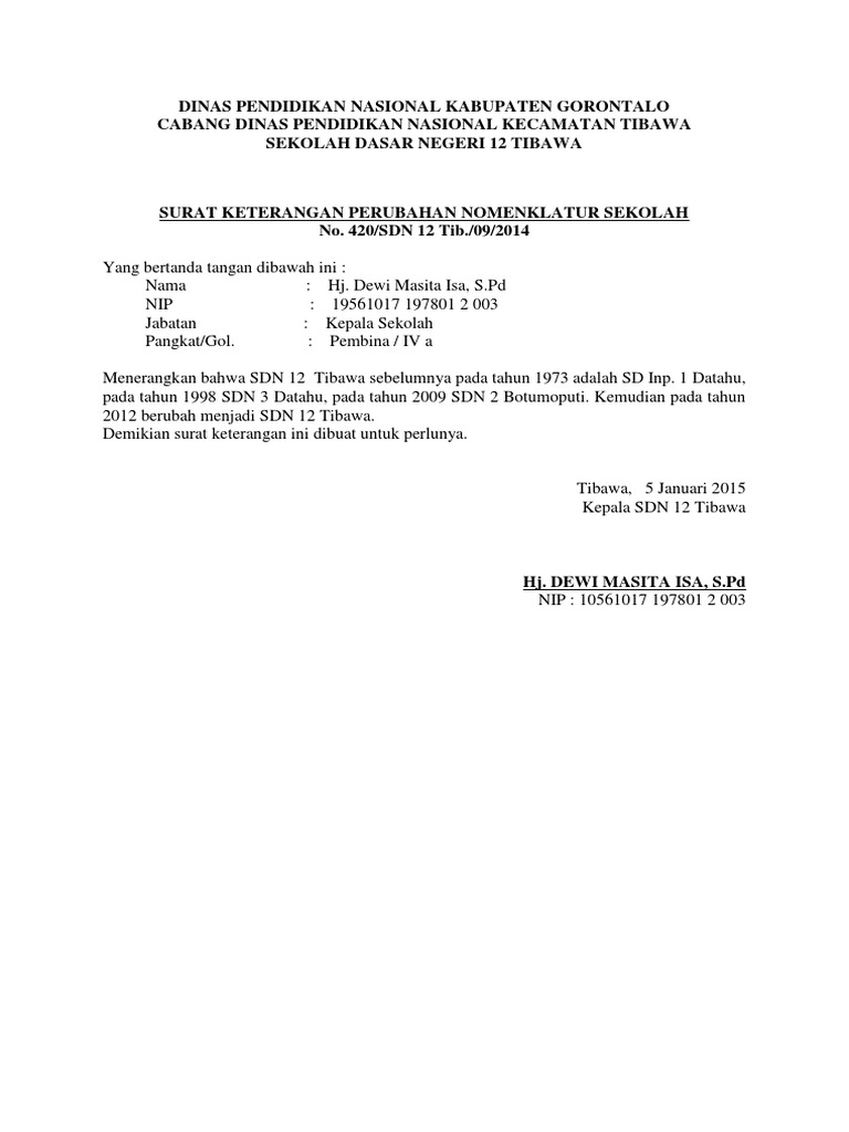 Contoh Surat Keterangan Perubahan Nama Sekolah - Bagikan Contoh