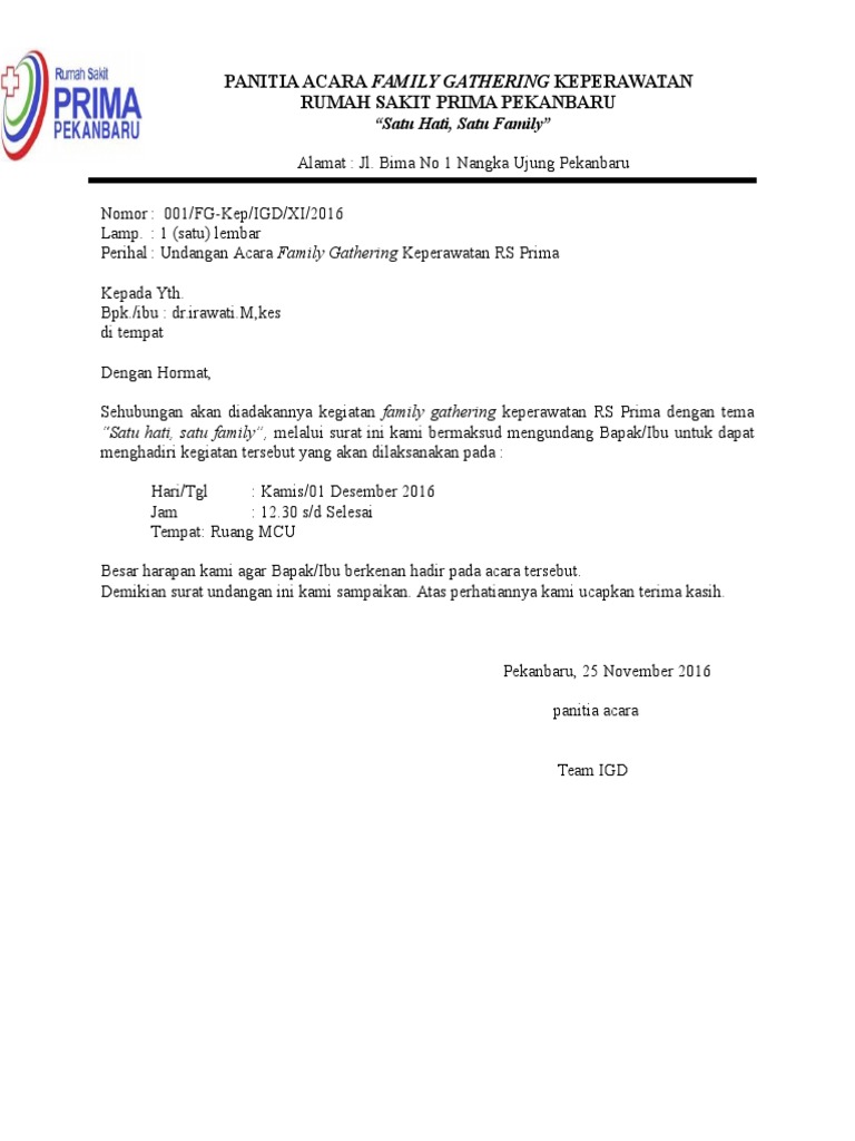 Contoh Surat Pemberitahuan Kegiatan Family Gathering