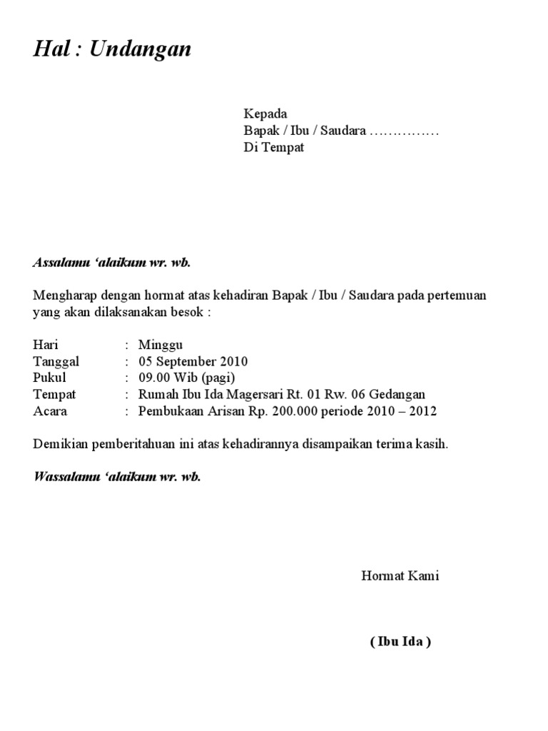 Contoh Surat Undangan Arisan RT Yang Baik | Belajar Office