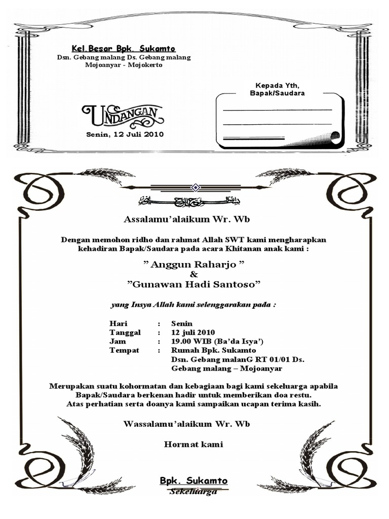 Contoh Surat Undangan Walimatul Khitan | Belajar Office