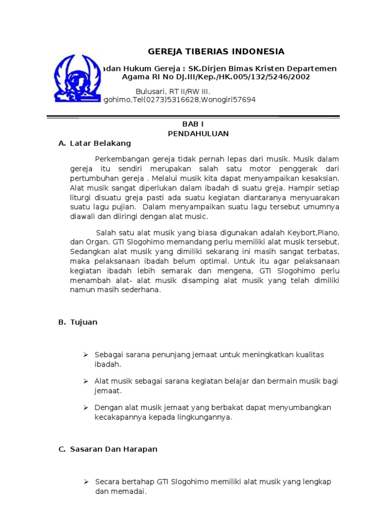 Download Contoh Proposal Pengajuan Alat Musik Gereja - Berbagi Contoh Proposal
