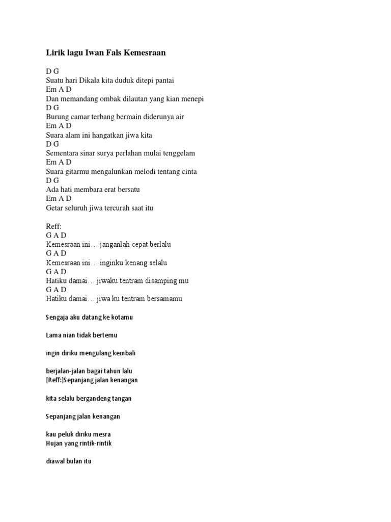 Chord Gitar dan Lirik Lagu Kemesraan - Iwan Fals Kunci dari C: Kemesraan Ini Janganlah Cepat Berlalu - Tribunnews.com Mobile