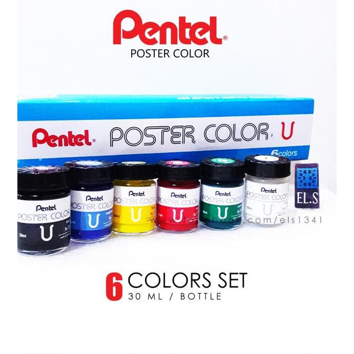 HB9147 Pentel Poster Colors Set 6 Warna (30 ml) Cat Poster | Shopee Indonesia