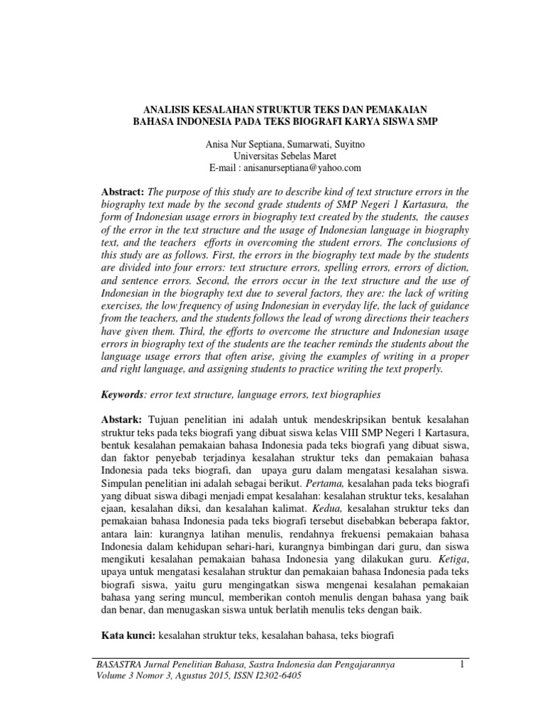 PDF) Analisis Kesalahan Berbahasa Bidang Sintaksis dalam Teks Biografi Siswa Kelas X SMA Negeri 7 Padang