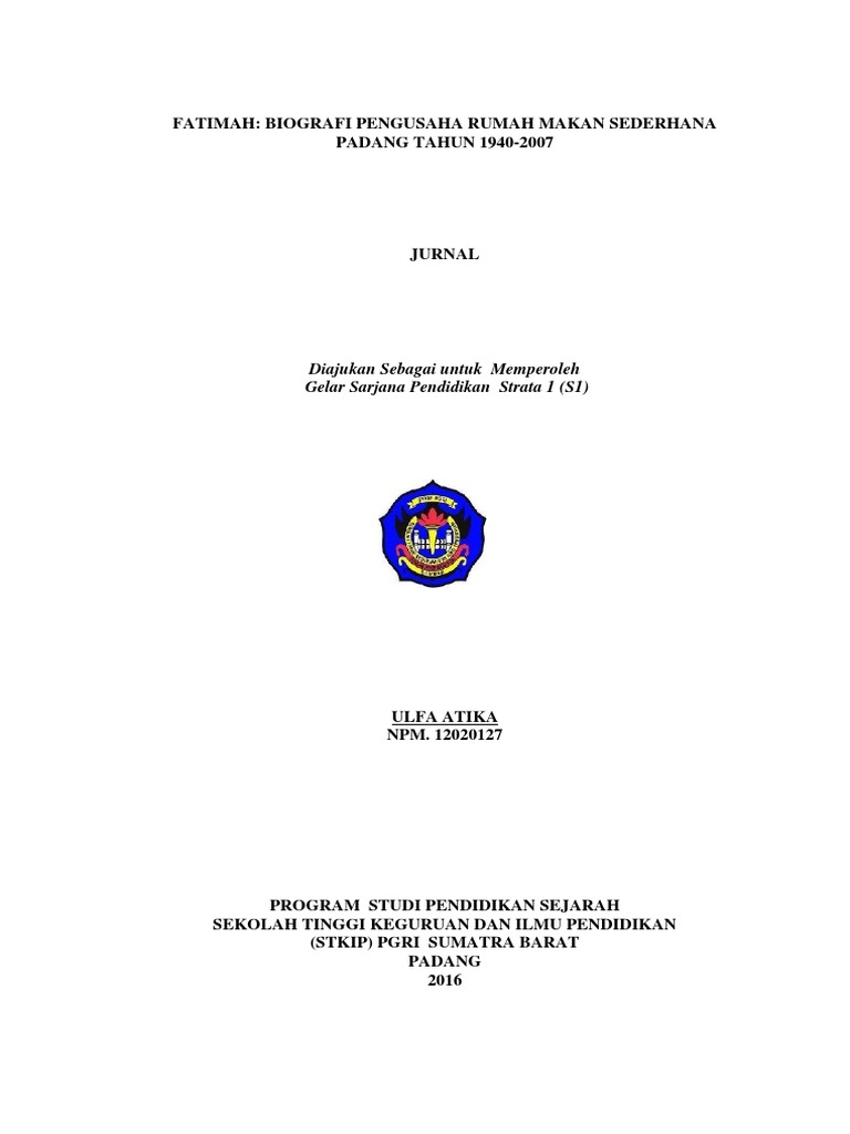 FATIMAH: BIOGRAFI PENGUSAHA RUMAH MAKAN SEDERHANA PADANG TAHUN 1940-2007 JURNAL Diajukan Sebagai untuk Memperoleh Gelar Sarjana