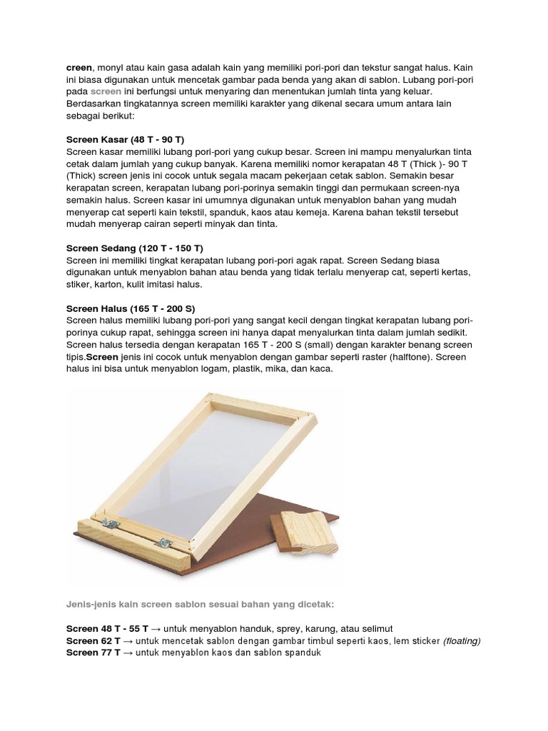 Jenis Screen Sablon dan Bahan Cetak | Percetakan Rangkap Dua