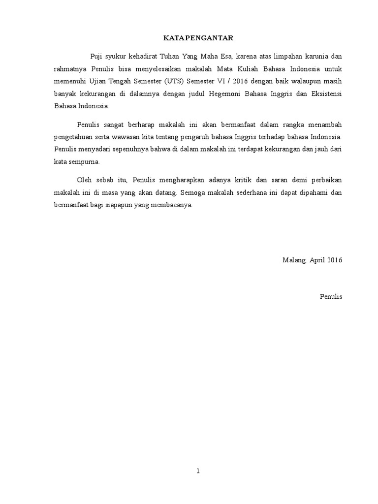 Contoh Kata Pengantar Makalah Bahasa Inggris Dan Terjemahannya