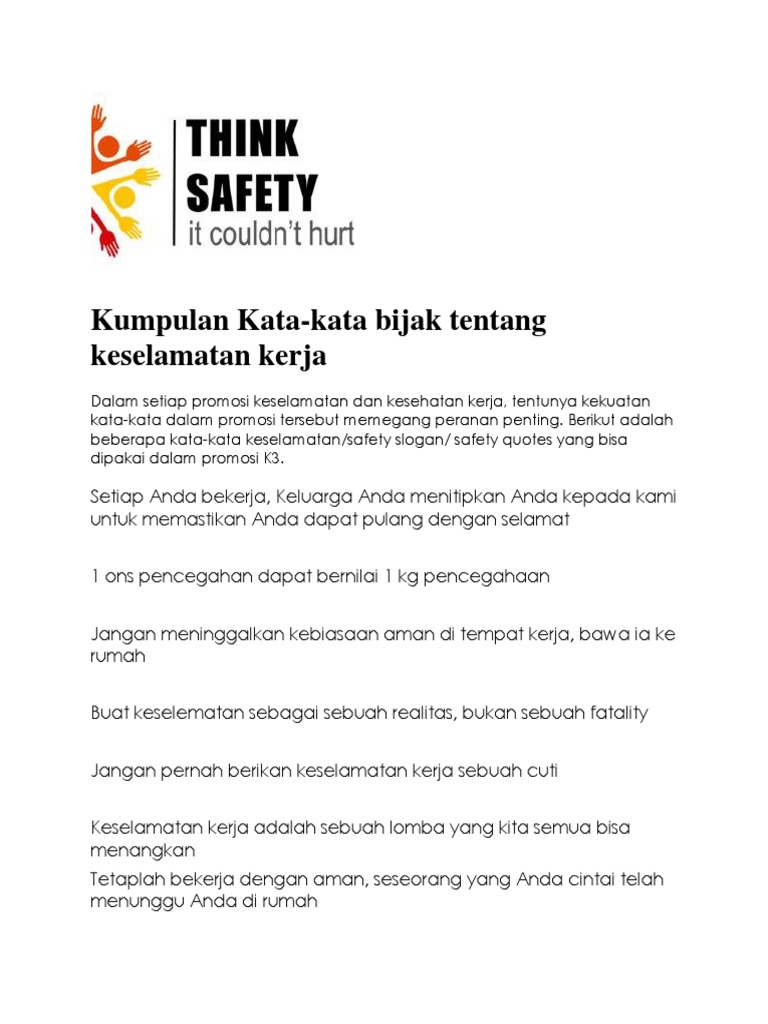 Kata Bijak Untuk Keselamatan Kerja | QWERTY