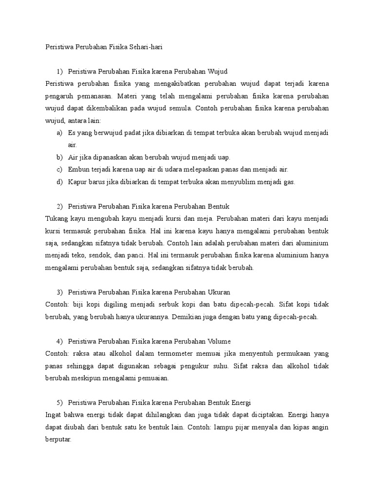 contoh kegiatan perubahan fisika beserta alasannya - Brainly.co.id