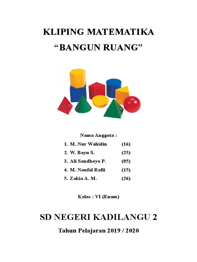 Kliping Matematika “Bangun Ruang”: Sd Negeri Kadilangu 2