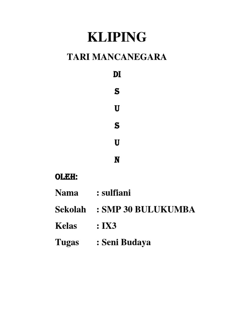 KLIPING SENI BUDAYA TARIAN MANCANEGARA.docx - KLIPING SENI BUDAYA TARIAN MANCANEGARA DI SUSUN O L E H SATRIA PRATAMA SMP NEGERI 6 TANAH PUTIH KECAMATAN | Course Hero