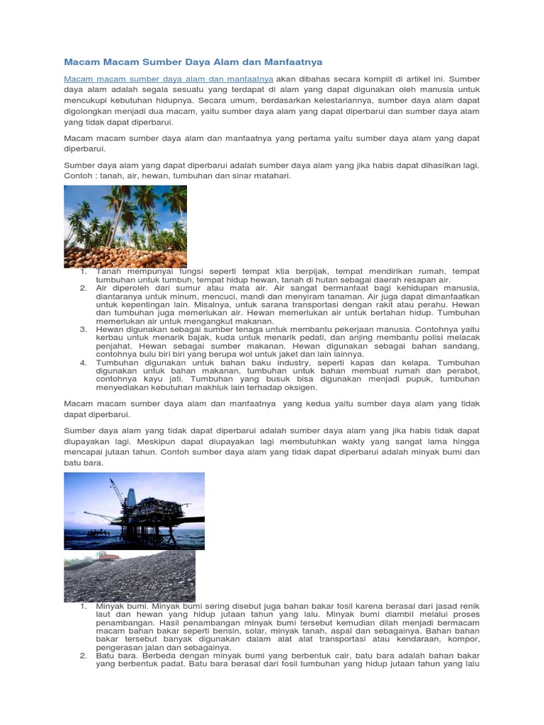 DOC) kliping macam-macam sumber daya alam didunia untuk tugas sd …