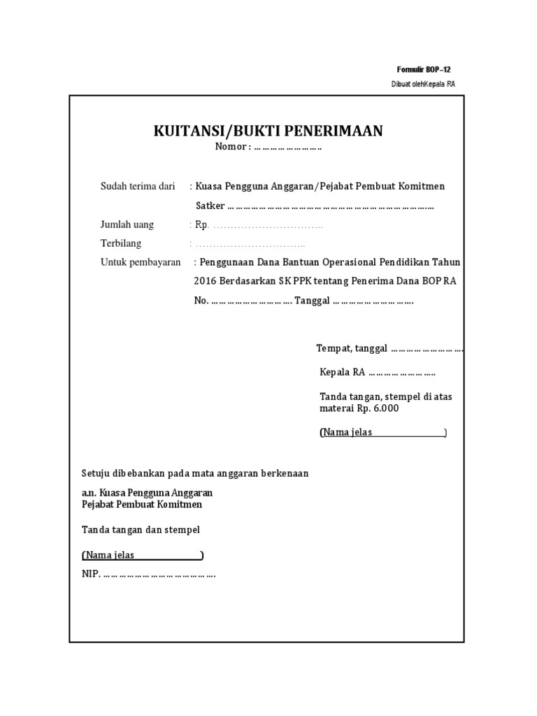 Jelaskan cara pengisian setiap bagian kwintansi - Brainly.co.id