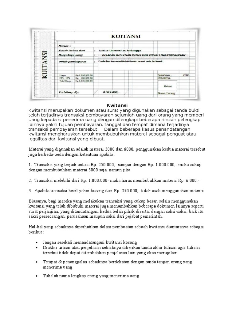 Cara Menulis Kwitansi Penjelasan dan Contoh | dosenpintar