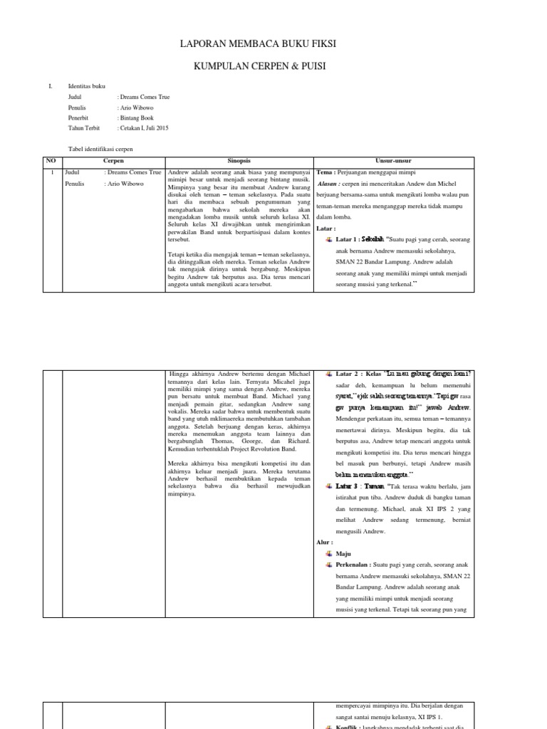 laporan membaca buku kumpulan cerpen - Brainly.co.id