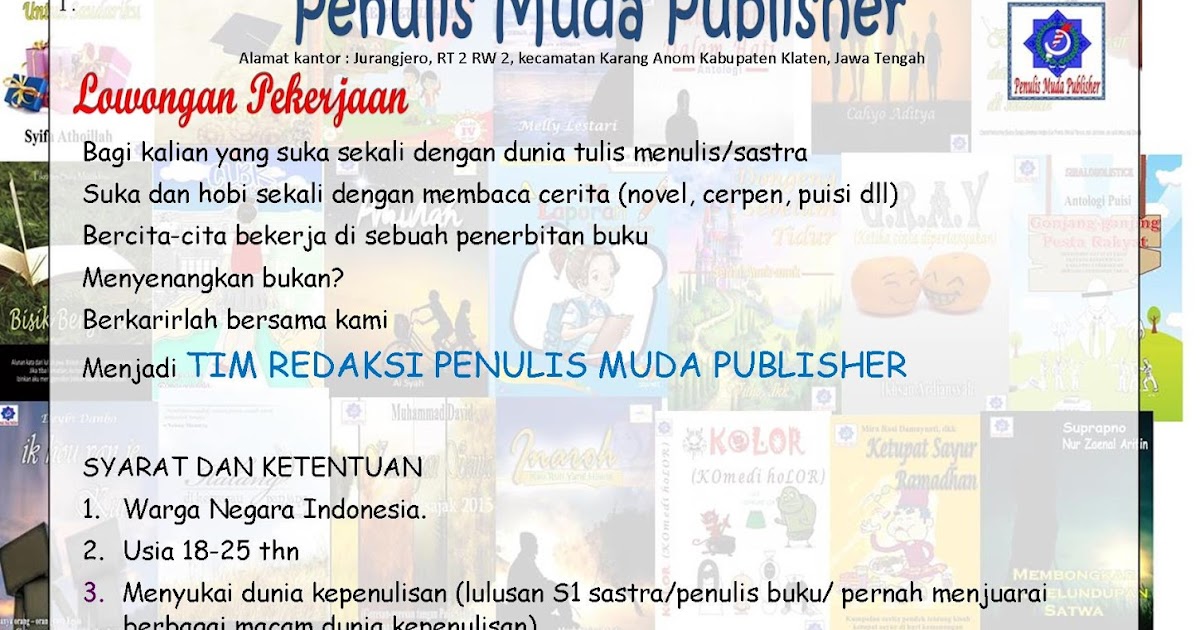 penulis muda publish on Twitter: “LOWONGAN KERJA Dibutuhkan editor sekaligus layouter naskah novel, cerpen dll. Tidak ada… https://t.co/wDQfX5Rm4H”