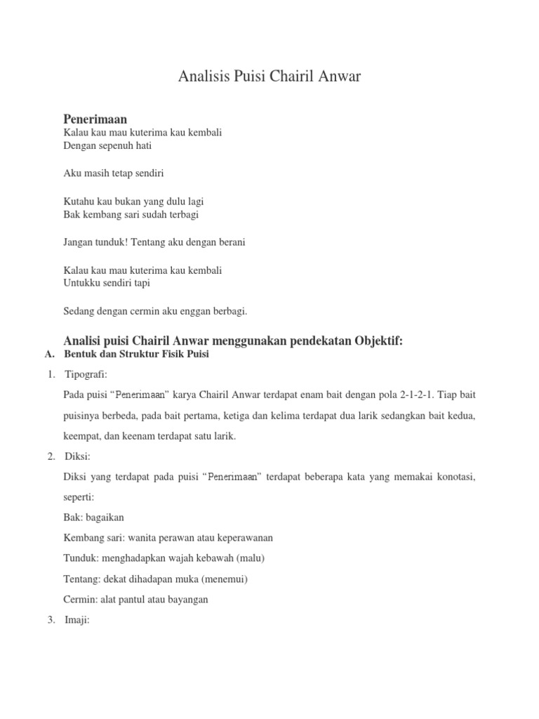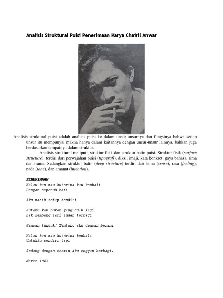 Analisis Struktural Puisi Penerimaan Karya Chairil Anwar