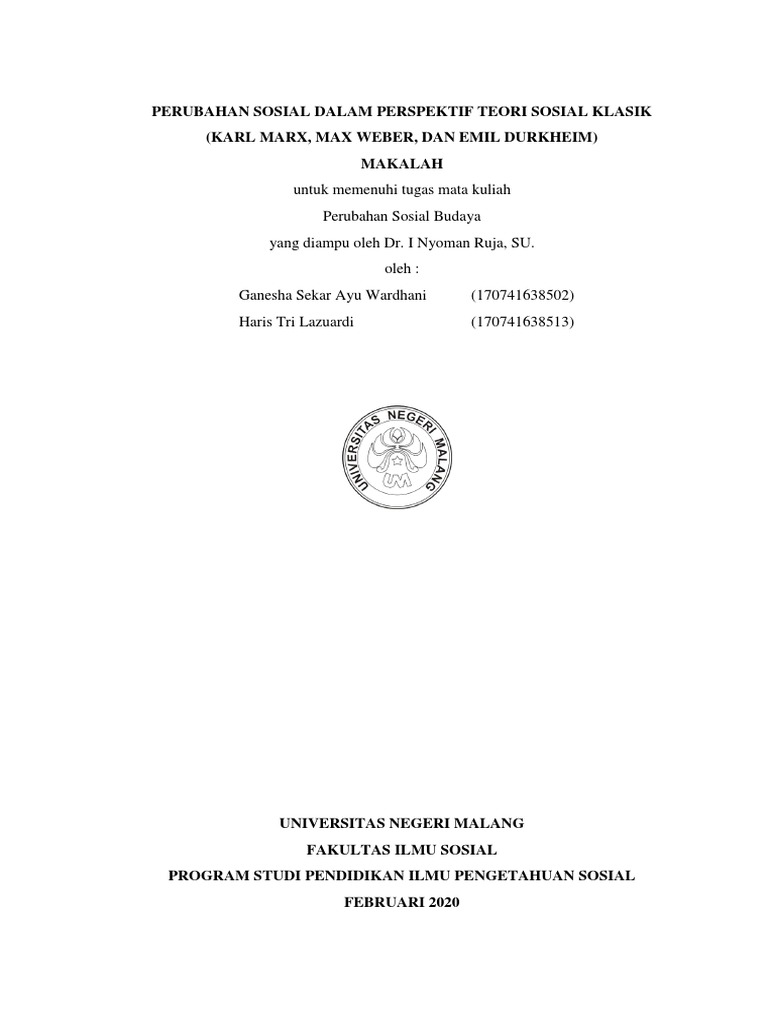DOC) Tokoh Sosiologi Pembangunan, Teori Sosiologi Klasik-Modern, dan Integrasi Nasional | Niken Wardani - Academia.edu