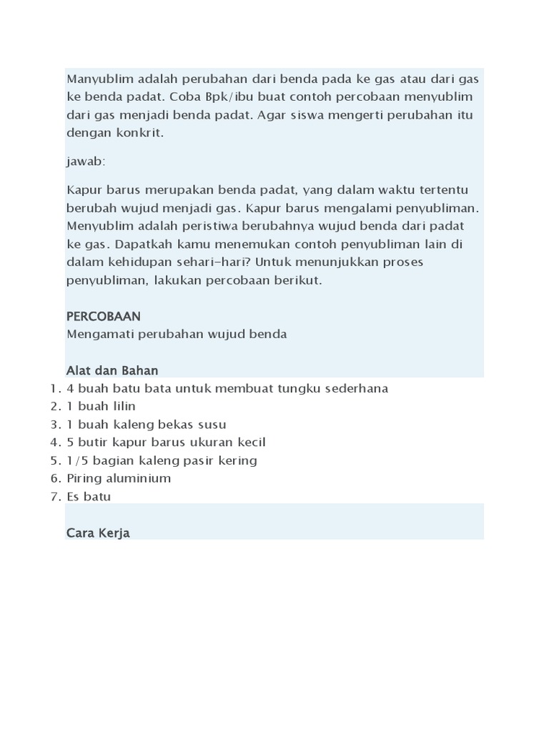 Percobaan Perubahan Wujud Benda Menyublim | Mikirbae.com