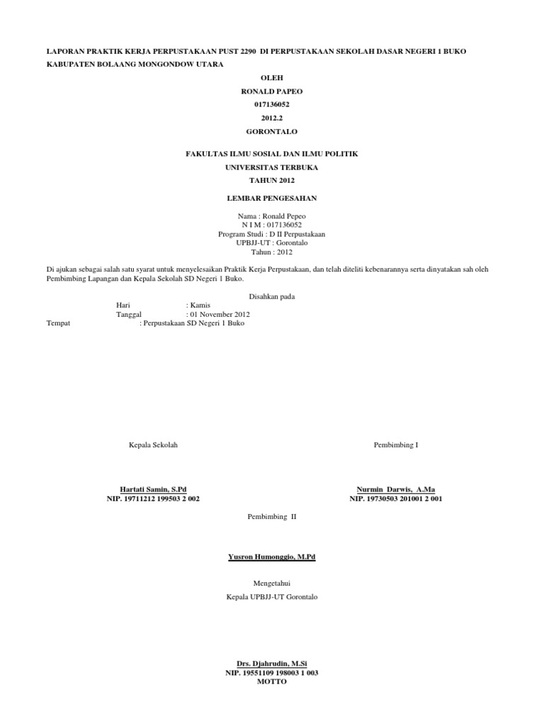 Laporan Praktik Kerja Perpustakaan Pust 2290 Gorontalo