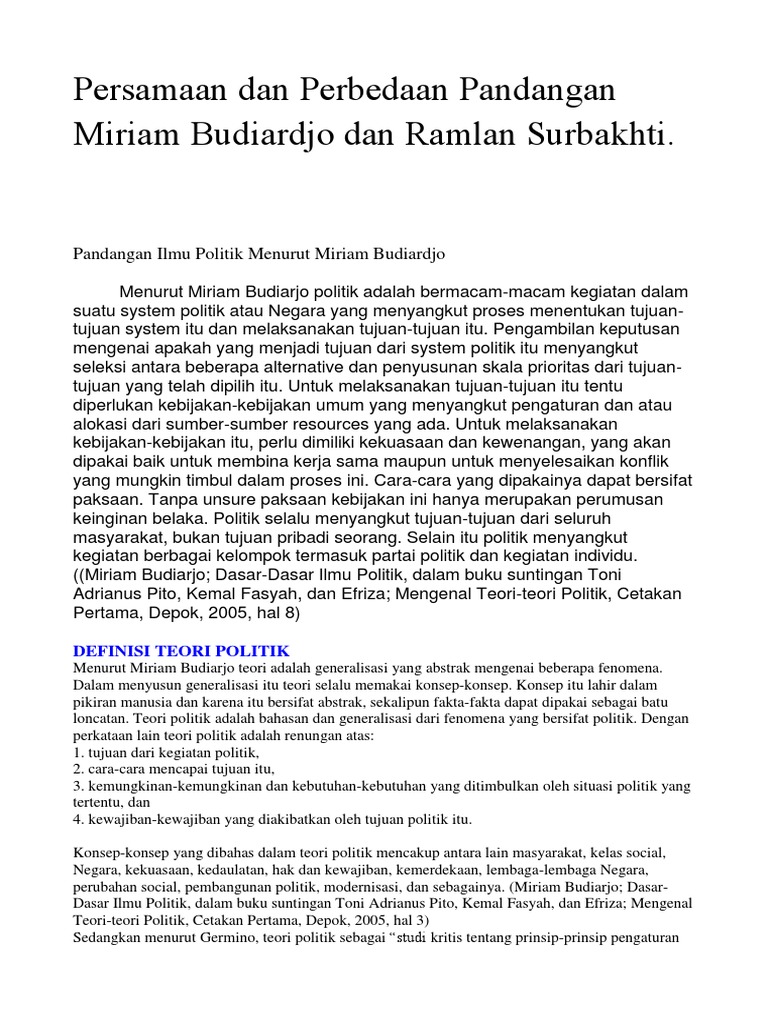 Persamaan dan Perbedaan Pandangan Miriam Budiardjo dan Ramlan …