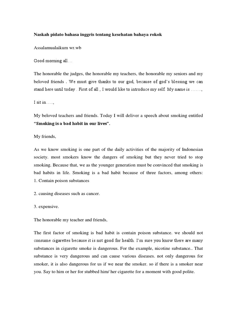 Naskah pidato bahasa inggris tentang kesehatan bahaya rokok …