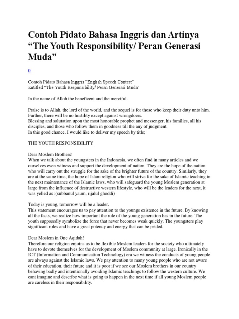 Contoh Pidato Bahasa Inggris dan Artinya Tema Generasi Muda …