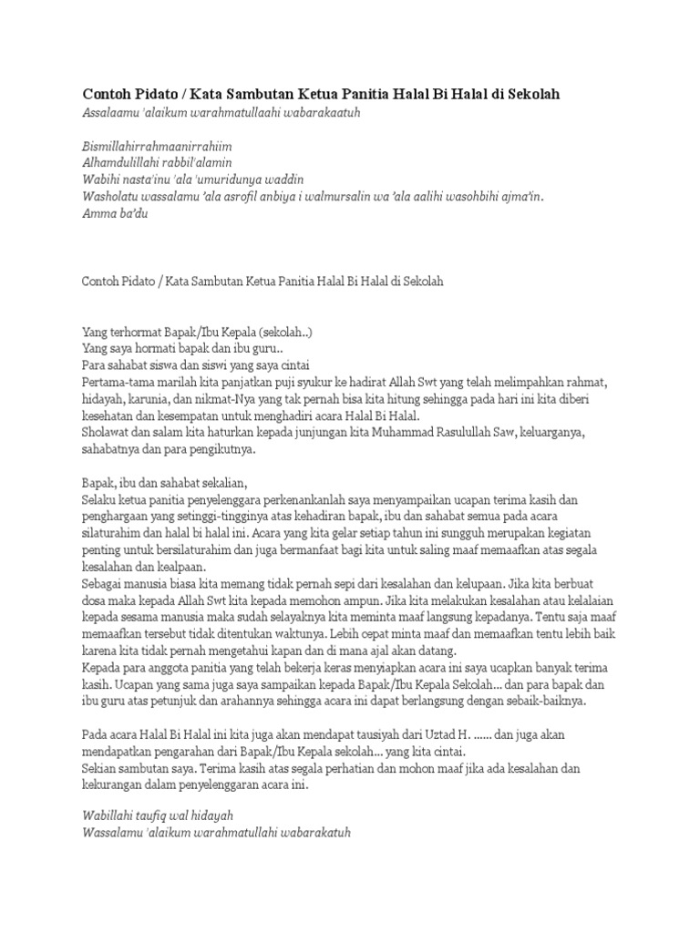 Contoh Pidato Panitia Acara Halal Bi Halal Sekolah for Android - APK Download