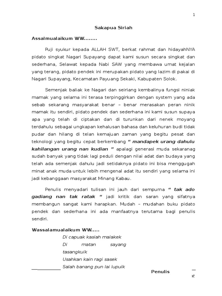 Pidato Adaik Pasambahan Siriah — www.rangtalu.net