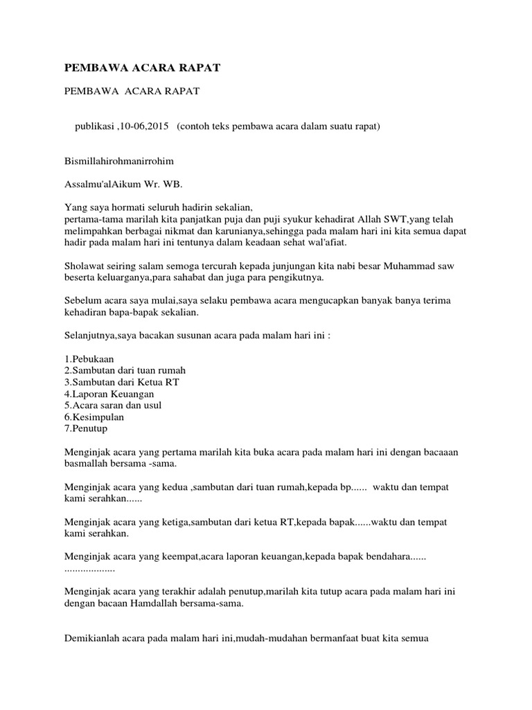 Contoh Naskah Pembawa Acara Rapat - Contoh Naskah