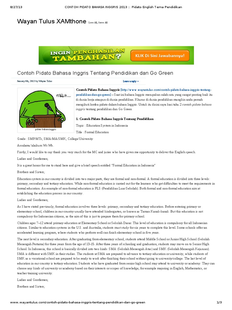 Contoh Pidato Bahasa Inggris 2013 __ Pidato English Tema Pendidikan | Secondary School | Primary Education