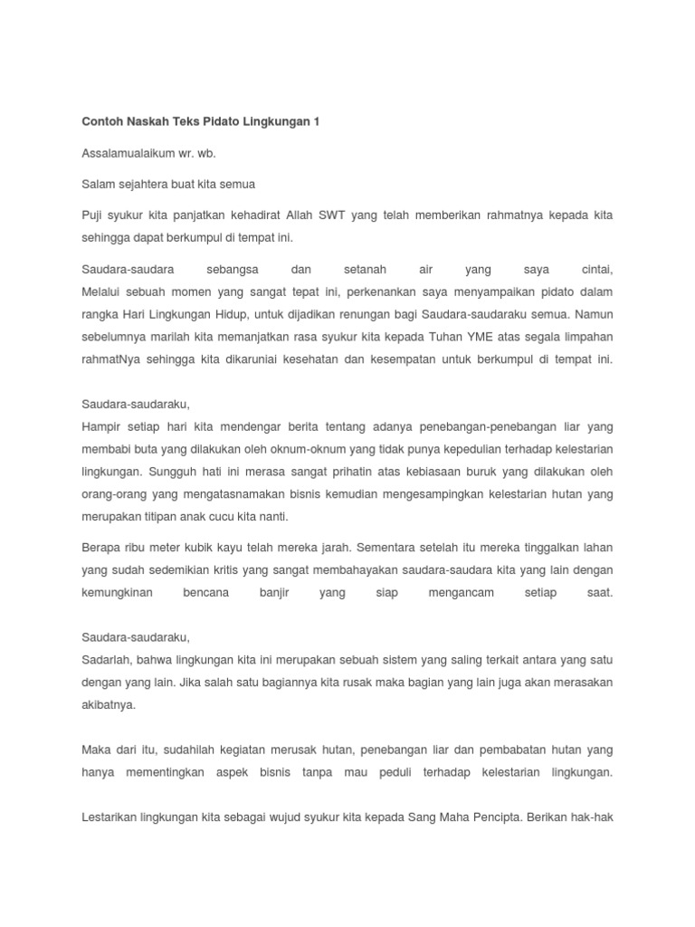 Contoh Pidato Tentang Lingkungan Lengkap - Contoh Pidato Terlengkap | Pidato79