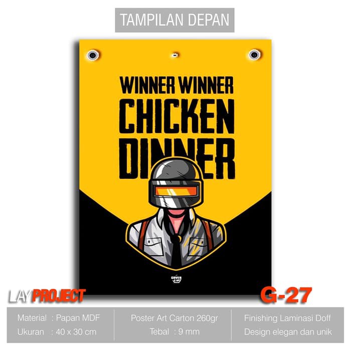 Hiasan Dinding Poster Kayu - GamersPUBG Winner Chicken Dinner G-27 …