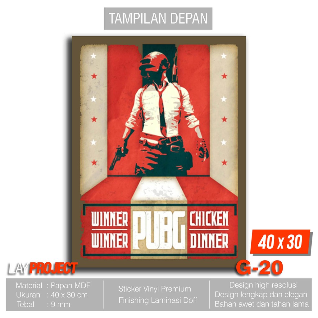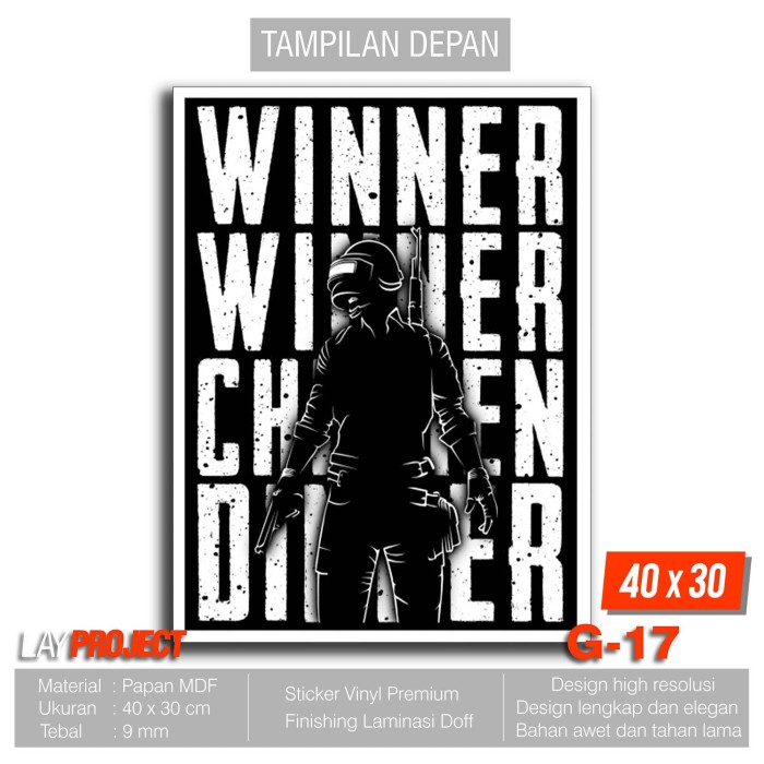 Hiasan Dinding Poster Kayu - GamersPUBG Winner Chicken Dinner G-17 …