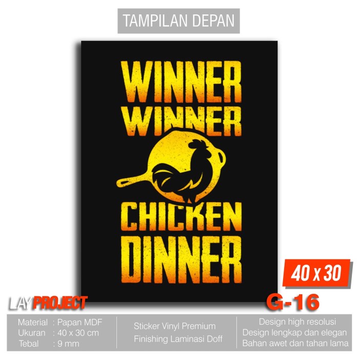 Hiasan Dinding Poster Kayu - GamersPUBG Winner Chicken Dinner G-16 …