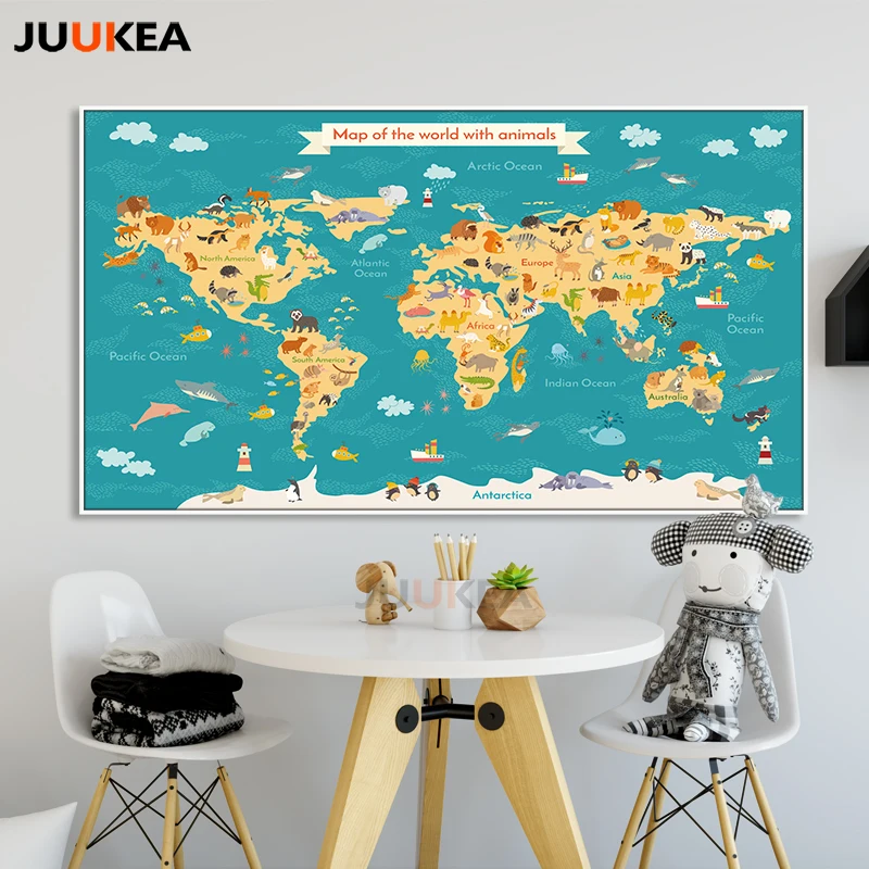 Anak anak Kawaii Kartun Hewan Dunia Peta Kanvas Cetak Lukisan Poster Nordic Dinding Seni Dinding Gambar untuk Anak anak Kamar Dekorasi Rumah|Painting & Calligraphy| - AliExpress