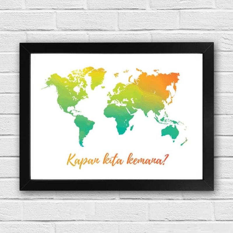 Jual Poster Peta Dunia Quote Unik Kapan Kita Kemana? Pigura Home Decor Online November 2020 | Blibli.com