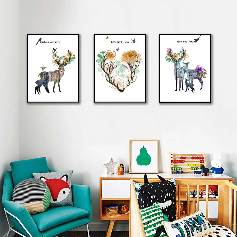 Shadow Flower And Deer Mac A4 A3 Canvas Painting Art Print Poster Picture Wall Living Room House Decorative Mural|Painting & Calligraphy| - AliExpress
