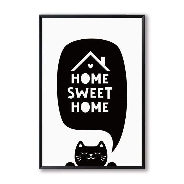 Black And White Cat English Sweet Phrase A2 A3 A4 Canvas Painting Art Print Poster Picture Wall Baby Room Living Room Home Decor|Painting & Calligraphy| - AliExpress